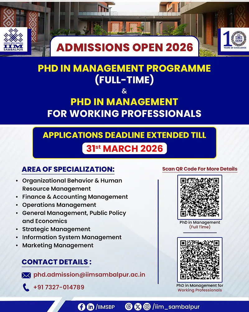 IIM Sambalpur PhD in Management 2026 (Full-Time Programme)